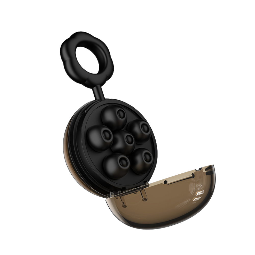 - 3 pairs of noise-canceling silicone earplugs (sizes S, M, L)